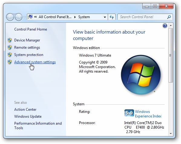 Now click on the Advanced system settings link.
