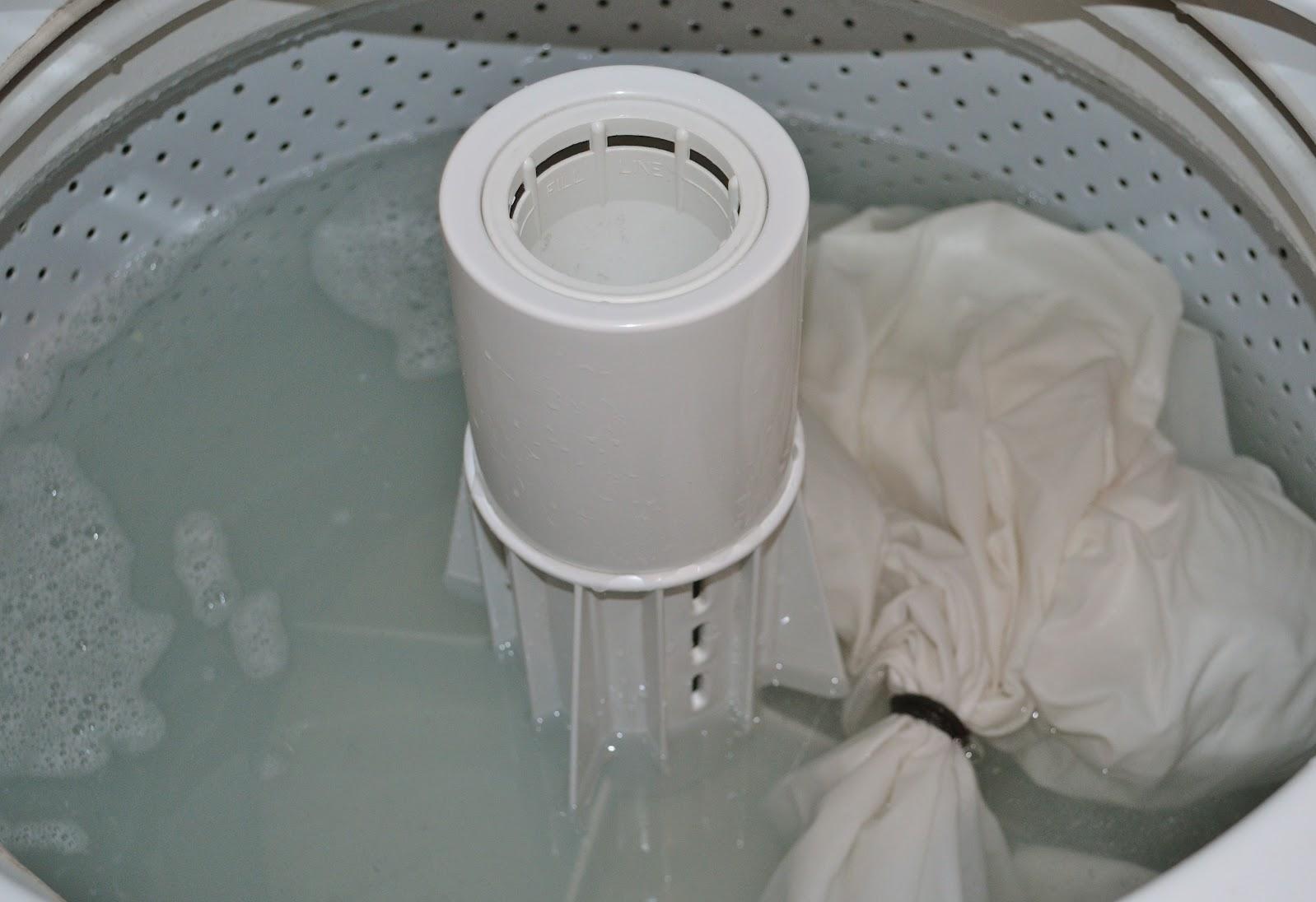 Fill the tub of a washing machine with coldwater and place the zippered pillow enclosing the stuffed animal in it. Add a handful of gentle laundry detergent and set the timer at about 3 minutes with a gentle cycle. When the timer ends, remove the zippered pillow from the washing machine.
