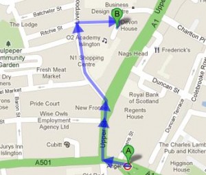 Angel Tube Station is 0.3 mile distance away from the shopping center. By walk it will take 7 minutes to reach N1 Islington Shopping Centre. Form the station, direct yourself towards west and start walking on the City Rd/A1. After covering 695 feet distance take a left turn and continue your walk on the Liverpool Rd/B515. Wrap up 0.1 mile on the Liverpool Rd and then head towards the Parkfield St where the center is situated. In order to see the route map for detailed instructions, click here!