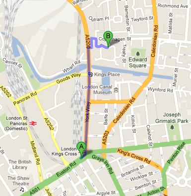 Bus can also take you close to Kate Greenaway Nursery School as there is a bus stop called King's Cross, Copenhagen Street York Way (Stop C) that is roughly 0.1 mile away from it and visitors can easily cover this distance by walking for 3 minutes. Bus number 390 can take visitors to King's Cross, Copenhagen Street York Way (Stop C).