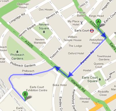 From nearby Earl's Court tube station move Southeast on Earl's Court Rd/A3220 towards Old Manor Yard. Now turn right onto Penywern Rd. and take the 1st right onto Warwick Rd/A3220. The centre will be on your left side View Map.