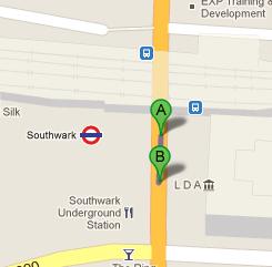 Southwark tube station is just 52 ft away from the office of the London Development Agency. Visitors could easily make to the LDA office on foot from this London Underground station in more or less 11 seconds by heading in the south course on Blackfriars Road/A201 towards The Cut/B300 from the Southwark tube station. View Map