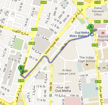 Oud Metha Metro Station 2 is located at 1.4 kilometres walking distance from the Mak’s Food Restaurant in Karama, Dubai, which makes it hardly 18 minutes journey. All commuters of this metro station needs to do is head out in southwest direction on 10th Street and then at the roundabout, take the fourth exit onto Umm Hurair Road/D 78. Afterwards take the pedestrian overpass in order to get to the destination. Directions from Oud Metha Metro Station 2 to Mak’s Food Restaurant.