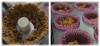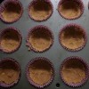 Once your crumb mixture is ready, place your standard muffin cups in a muffin tin. Divide the crumb mixture equally among the twelve-cupcake cups.