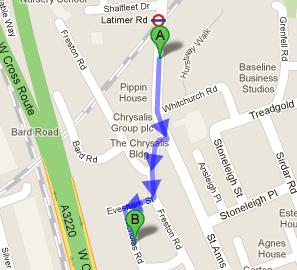 Latimer Rd Tube Station, being the closest rapid transit, is approximately 0.2 mile away from the main head office of Monsoon. For pedestrians, 4 minutes walk is required to cover the distance between the two locations. In the south direction on Bramley Rd you will have to start walking and after approximately 0.16 mile distance, continue onto Freston Rd and then take a right turn after wrapping up 131 feet. Then take the last left turn onto Nicholas Rd, where Monsoon is actually situated. The detailed path can be viewed from Pedestrians Path.