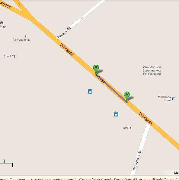 The nearest bus station to Morisson Store is Bradford City Centre, W1 Westgate (NW-bound). Move Northwest to Westgate/A6181 to Rawson road and you will find your destination. View map