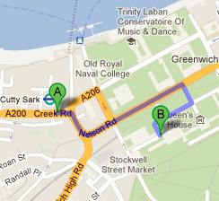 Greenwich, Trafalgar Estate (W-bound) is 5 minutes walk from National Maritime Museum as the gap between these two spots is 0.3 miles. So if a bus user heads southwest on Trafalgar Road/A206 towards Park Row and then continues following A206, he or she can reach National Maritime Museum after making a left turn and a right turn to locate the museum on the left side. Direction from Greenwich, Trafalgar Estate (W-bound) to National Maritime Museum.