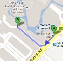 Madinat Jumeira 1 - Dubai bus stop is 350 meters away and 5 minutes walk from the Pai Thai Restaurant in Al Qasr hotel, and bus users can take any of these bus numbers 8 and 88 to get to this bus station. After reaching this bus stop, walker should head in the southwest course on شارع الصفوح‎/D 94, then make a slight right turn to locate the destination right in front. See map for directions.