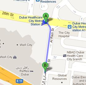 Dubai Healthcare City Metro Station 2 is just 350 metres away from People by Crystal. On foot this distance can be covered in approximately 4 minutes if a commuter heads in the east course on 26th Street from this metro station and then turns right onto 13th Street to locate the destination on the right side. Directions from Dubai Healthcare City Metro Station to People by Crystal.