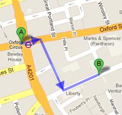 Ping Pong Restaurant at Great Marlborough Street is about 0.2 miles away from the Oxford Circus tube station. Patrons can cover this gap on foot in about 5 minutes, if they head east on Oxford Street/A40 towards Regent Street/A4201 from the Oxford Circus tube station then, turn right onto Argyll Street. This will led them to the left turn onto Great Marlborough Street, from where destination is not too far and can be easily located on the left. Walking directions to Ping Pong Restaurant from Oxford Circus Tube Station can be seen from here.