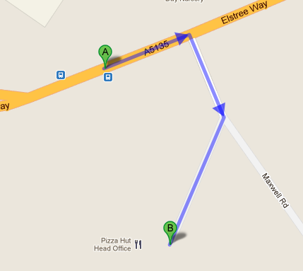 You can use either bus or taxi service or your own car. In oder to reach Pizza Hut Head office, reach Borehamwood bus stop. Now head in east on Elstree Way/A5135 toward Maxwell Road and take first right on Maxwell Road and then turn right.