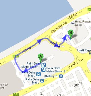 Palm Deira Metro Station 1 is 850 meters far from The Premiere Nightclub in Hyatt Regency Dubai. This makes it a walking journey of about 11 minutes, if a patron heads in the southwest course from Palm Deira Metro Station 1. Then at the roundabout patrons should take the first exit onto D 85, after which pedestrian should make slight right turn onto 27th Street. This will bring the patron to a roundabout, from where he or she will take the second exit. Afterwards patron will reach another roundabout, from where he or she will again take the second exit and soon find destination after covering some distance on the left.