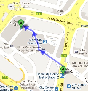 Deira City Centre Metro Station 2 is the nearest metro station from Pyongyang Okryu Gwan restaurant. The gap between these two sites is close to 550 meters, and on foot it can be covered in roughly 7 minutes by following the directions given below: