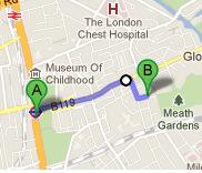 If you are at the Bethnal Green Tube Station, then it will take 9 minutes to reach your destination. The distance between two locations is of 0.5 miles, by walk you will head north and keep marching on the Roman Road/B119, until 0.3 miles pace is not covered. Take a right turn and start commencing on Morpeth St. then take a left turn on Bullards PI you will reach your destination. For further guidance related to the route Click Here!