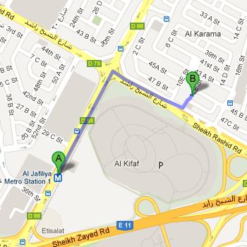 Al Jafiliya Metro Station 2 is about 1.3 kilometres away and 17 minutes walk from Ratsky Nightclub. Patrons can complete this journey in 17 minutes, if they follow these directions after exiting Al Jafiliya Metro Station 2: