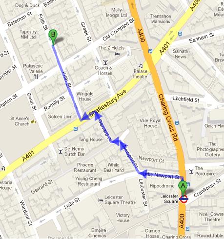 The nearest bus stop is called “Gerrard Place Chinatown (Stop P)” and is separated by a distance of 0.1 miles from the club. It can take you around 2 minutes to reach the club from the bus stop. Use any of the buses numbering 14, 19, 38, N19 and N38 to reach the bus stop. From the bus stop, move southwest on A401 and then make a right turn to come onto Frith St.