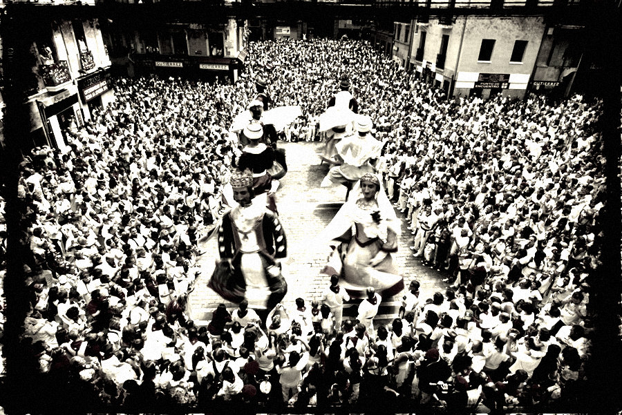Everyday eight giant figures which were built in 1860 earlier by Tadeo Amorena a Pamplona painter are brought in the Giants and big-heads parade. These giant figures are known as gigantes y cabezudos – in English it means big heads. These big heads represents queens and kings of various races like, Africa, Europe, America and Asia. A dancer is goes in the wooden structure and carries the 4 meters long figures.