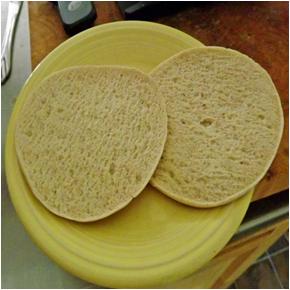 Take one sandwich thin and use a sharp knife to cut it into two halves from the center. Set it aside until you fry the remaining ingredients.