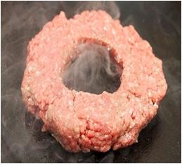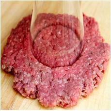 Wash your cutting board thoroughly and wipe it dry with a kitchen towel. Place one breakfast sausage patty on the cutting board. Now, grab a medium glass, hold its opening side down and make a perfect circle right in its center. Remove the extra sausage from the center to make the circles prominent.