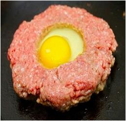 Now, break one medium egg into the center of the breakfast sausage patty.