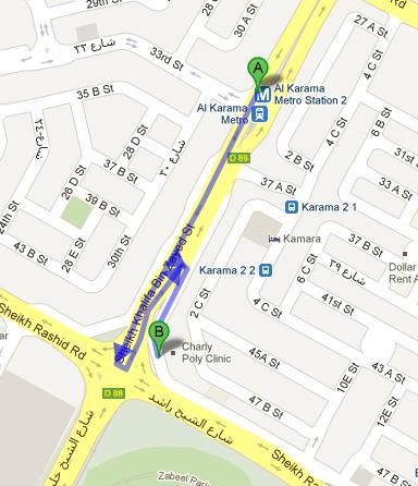 Karama 2 2 is the closest bus station to Scubatec, and buses number 33, 42, 44, 83, C3 and C5 serve this station. It is 750m away from the centre and by walk it takes 9 minutes to reach there. Move northeast on 4 C St toward 2 C St. Turn left onto 37 A St. Then take a slight left to stay on 37 A St. Now turn left onto شارع الشيخ خليفة بن زايد/D 88. By taking slight left, you will locate your destination on the left side. View Map.