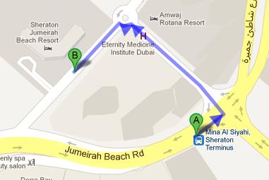 After getting of the bus you will have to head in the northeast direction on the Jumeriah Beach Rd. take a left turn and the continue your march. Take a slight right turn after covering 200 meters. The last left turn will help you in reaching at Sheraton Jumeirah Health & Beach Club Dubai.
