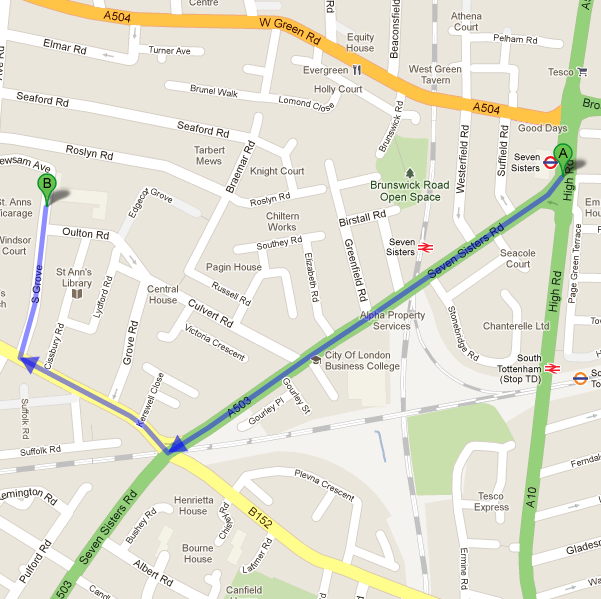 Seven Sisters tube station is closest to the South Grove Children’s Centre. Once you leave the station on Seven Sisters Road, head southwest towards Suffield Road. Turn right onto Saint Anne’s Road and then take the fourth right onto S Grove. South Grove Children Centre will be on your right. View Map