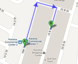 The nearest bus stop from Special Need Families Support Center is the Karama, Commercial Center 2. Routes that make a stop here are 33, 42, 44, 83 and C5. In order to cover the 400 meter distance you will have to first head in the north direction on 16th St towards 33 B St. After covering 210 meters take a right turn on the 33 B St and then take another right turn onto 18 B St. Keep moving until you cover about 100 meters distance. For a detail view of the pedestrian path you can take a look at this link.
