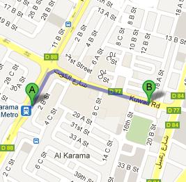 Al Karama Metro Station 1 is quite close to Student Biryani, as patrons can reach this bistro from this metro station on foot in about 11 minutes after covering 900 meters gap. During this journey they need to follow these directions: