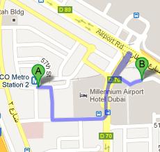 Bustan Rotana Hotel 2 – Dubai bus stop is about 400 meters away from Sukhothai Restaurant and people can use bus number 32C to reach this station from where they can easily cover this 400 meter distance on foot in about 5 minutes span. As far as the directions are concerned, bus user should head north on D 70 after arriving at this bus stop and then turn right to find the destination on the right. Checkout map for directions.