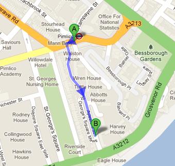 Pimlico tube station is the nearest London Underground from where passenger can reach Tachbrook Nursery School on foot in approximately 4 minutes. In order to do that passengers should head in the west course on Lupus Street/A3213 towards Aylesford Street, turn left onto Aylesford Street, take a slight right turn and stay on Aylesford Street. Soon the patrons will see Tachbrook Nursery School on his or her left. View Map