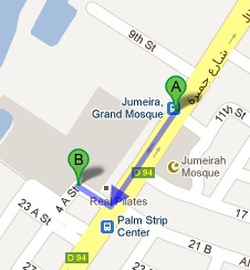 Bus numbers 8, C10 and X28 serve Jumeira, Grand Mosque – Dubai bus stop that is hardly 300 meters away from Thai Bistro and by walk this gap can be covered in approximately 4 minutes time span. If a bus user follows these directions: