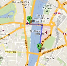 Westminster tube station is 12 minutes walk from Thames Cruises and the distance between them is close to 0.6 miles. In order to cover this journey on foot in 12 minutes, commuters should head east on Bridge Street/A302 towards Victoria Embankment/A3211, after exiting from this London Underground and then, continue to follow A302. Later the commuters should turn right in order to find the destination on the right side. Directions from Westminster tube station to Thames Cruises.