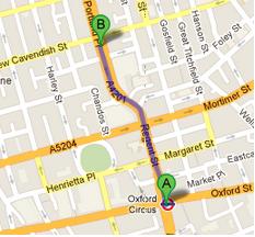 Oxford Circus Tube Station is 0.3 mile away from the Center, which makes it the nearest rapid transit. By walk, it will take 7 minutes to cover the required distance. After taking an exit from the station, head north on Regent St/A4201 and then move toward the Oxford St/A40. Keep onwalking until you reach at your destination. This Link will help in viewing the route map in detail.