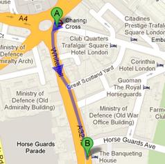 The nearest tube station is Charing Cross tube station which is 0.2 miles away. By walk it will take 4 minutes to cover the distance between the two locations. From the exit of the station head southwest in order to move towards Whitehall/A3212, then take an exit from the roundabout and march onto Whitehall/A3212. After covering 345 feet take a slight left turn and continue your walk on Whitehall/A3212. You will then reach your location. For a detailed view of the map, click here!