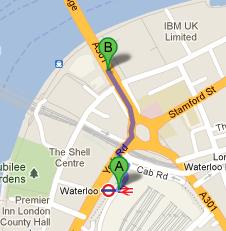 Royal Festival Hall (Stop Q) is about 0.2 miles away from Hayward Gallery and by walk it can be reached in 3 minutes approximately. Head northeast on Belvedere Road towards Waterloo Road from Royal Festival Hall (Stop Q) then, turn right onto Waterloo Road. Afterwards take a sharp left turn onto Waterloo Road/A301 and continue to follow A301 in order to locate the destination on the left. Bus number RV1 stops at Royal Festival Hall (Stop Q). Directions from Royal Festival Hall (Stop Q) to the Hayward Gallery.