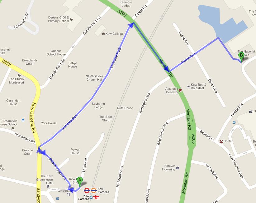From the closest underground station, Kew gardens Tube station, move southwest on Layton Pl toward Station Ave turn right onto Station Approach. Turn right onto Kew Gardens Rd/B353 and then right onto Leyborne Park. Turn right onto Mortlake Rd/A205. Turn left onto Ruskin Ave. The National Archives will be on your left. View Map