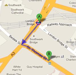 The Old Operating Theatre Museum is quite close to Guy's Hospital (Stop K), which makes it roughly 1 second walking journey. So if a bus user heads southeast on St. Thomas Street/A200 towards London Bridge Street, he or she will be able to locate the destination after covering approximately 3 ft distance. Bus numbers that have stops at this bus stop are 381, 43 and N381. Directions from Guy's Hospital (Stop K) to The Old Operating Theatre Museum.