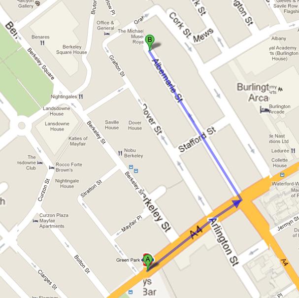 Green Park tube station is the closest tube station from Royal Institution. The 0.3 mile distance can be covered in just 6 minutes on foot. From the tube station head northeast on Piccadilly / A4 and then turn left onto Albermale St. The institution will be on your right side. View Map