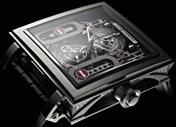 Probably one of the most playful and luxurious watches around. Frog simply picks up a complicated watch and then makes it even more complicated. This watch is called a frog because there are two large crystal and aluminium domes used in it and they look like amphibian eyes.