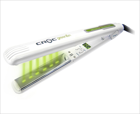 The Croc Greenion Iron is an eco-friendly product with greenion technology and uses natural hemp powder. The iron has an onboard ionizer, producing green ions which prevent hair damage and nourish them.