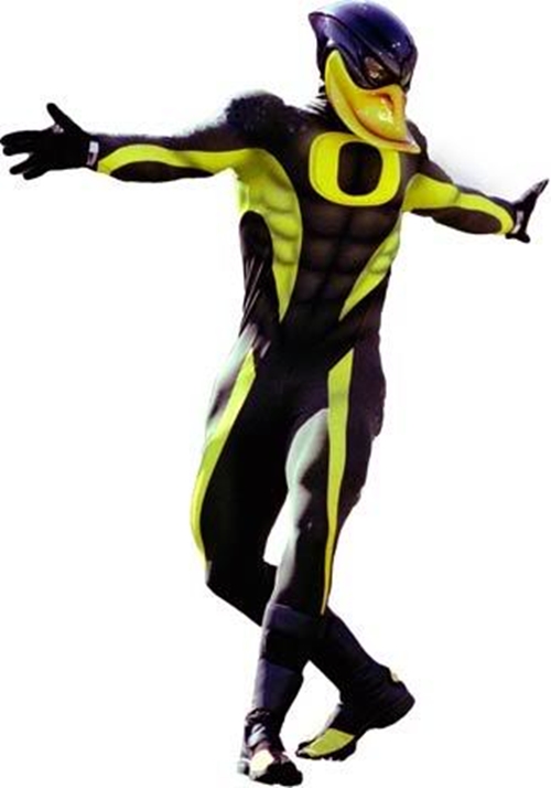 It’s a bit of Robocop meats Daffy Duck, in a bad way. It is the mascot of University of Oregon’s Duck Athlete program. They can certainly do a better job the next time.