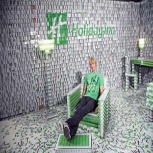 Bryan Berg made the record for the tallest house of cards in 1992 and he broke his own record in 2004. He has created a 400 square foot key card hotel. The hotel has bathroom, bedroom and a lobby.