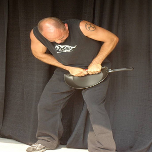 There are different records which show people's strength. A man rolled an aluminum frying pan to the tightest circumference. Scott Murphy rolled the frying pan in 30 seconds with his hands.