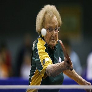 Old people can amaze you at times. This table tennis player is 97 years old and represented Australia in 2008 and 2009.