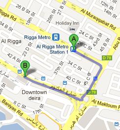 Head southeast on Al Rigga Road towards Abu Baker Al Siddique Road/D 78, then make a slight right turn onto Abu Baker Al Siddique Road/D 78 and afterwards at the roundabout, take the second exit onto Al Maktoum Road/D 89 where you can find your destination on the left side.