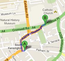 Brompton, Victoria & Albert Museum (E-bound) is a bus stop that is about 11 seconds away from Victoria and Albert Museum by walk. If a visitor heads southwest on Thurloe Pl/A4 towards A3218 from Brompton, Victoria & Albert Museum (E-bound), he or she can reach this museum after covering a gap of 49 ft. Directions from Brompton, Victoria & Albert Museum (E-bound) to Victoria and Albert Museum.