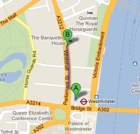 St James', Horse Guards Parade (SW1) (S-bound) is the nearest bus stop to the Wales Office roughly 30 ft away and is one minute journey by walk. After arriving at this bus stop passenger should head in the south course on Whitehall/A3212 towards Horse Guards Avenue and they will find the destination in front of them.