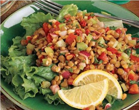Your Warm Lentil and Roasted Pepper Salad is ready; serve it warm and enjoy!