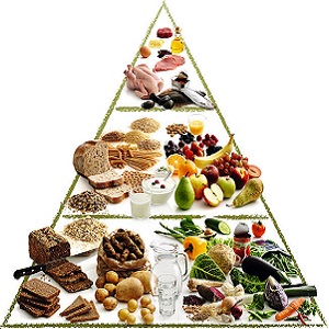 The base of the pyramid has vegetables and whole grains which should be consumed the most because they are the most beneficial and harmless of the food group. Grill or bake your vegetables instead of frying them in oil.